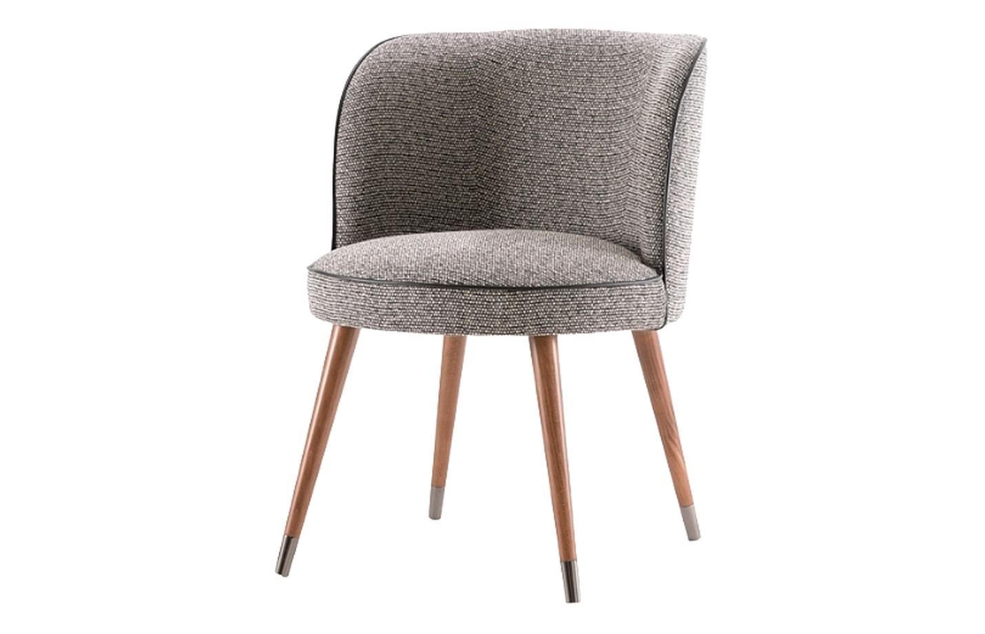 Material: Fumé stained beech, upholstered seat & back in fabric or faux leather with piping.