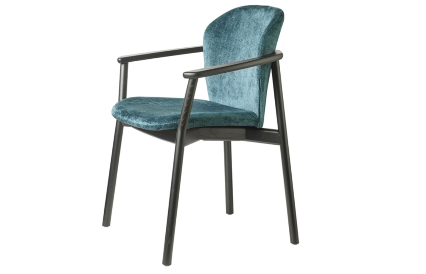 Material: Frame in ash wood. Upholstered seat & back in fabric or faux leather.