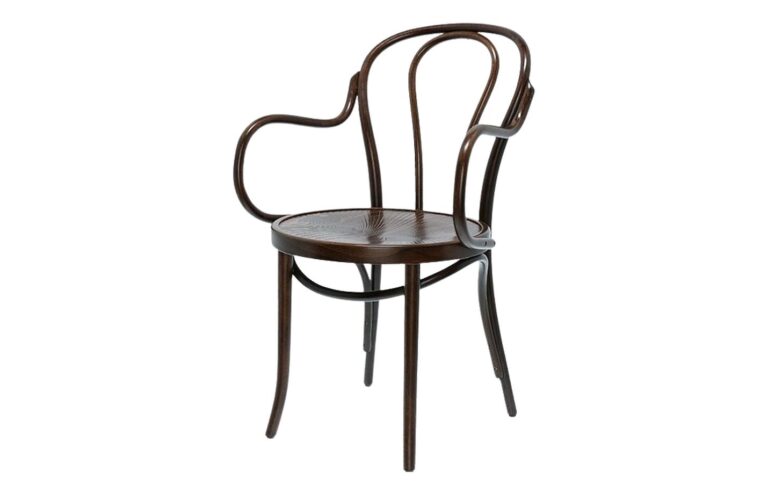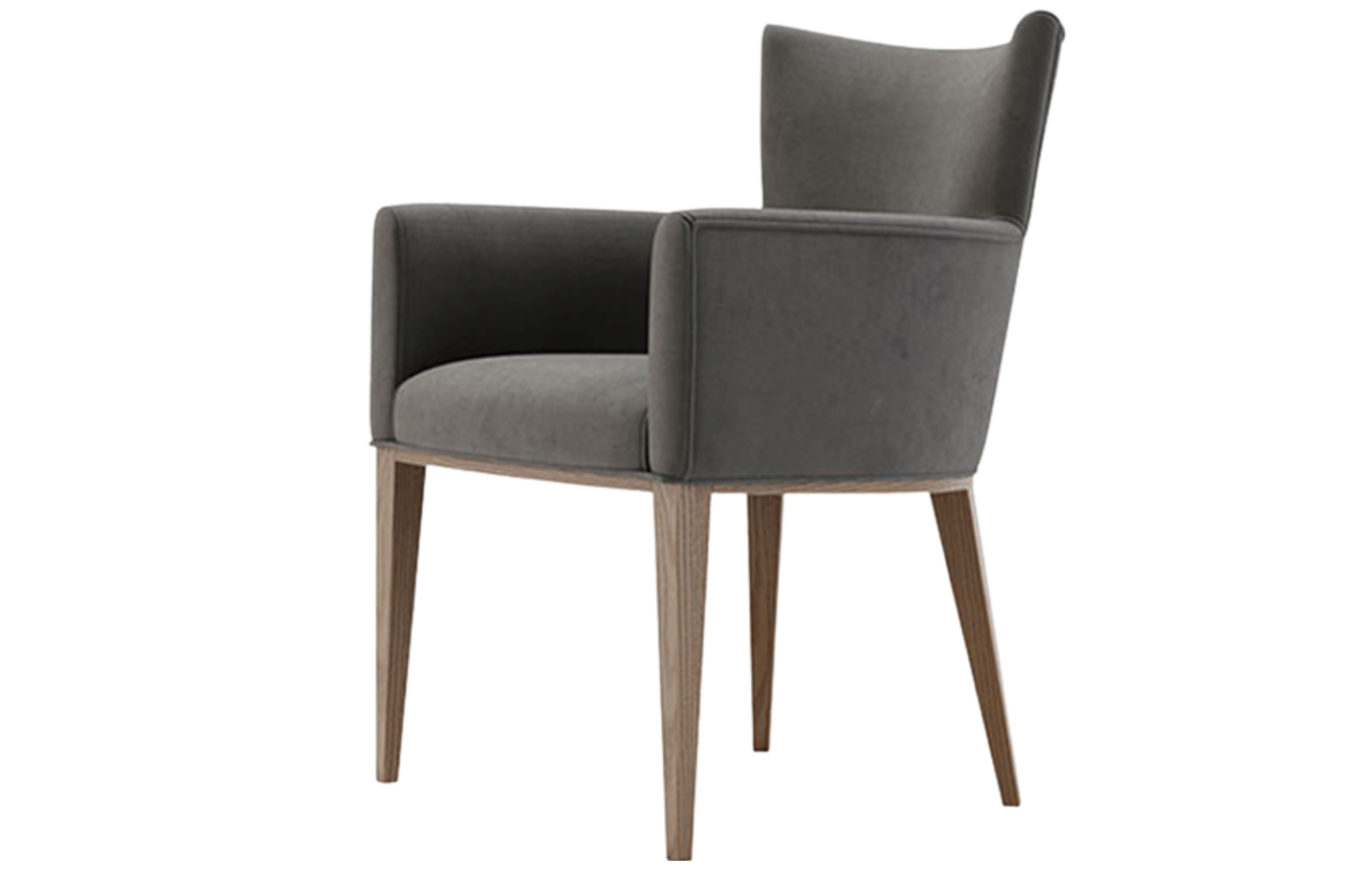 Material: Walnut stained ash, upholstered seat & back in fabric or faux leather with piping.